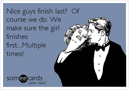 This whole “nice guys finish last” thing is the sad ranting of an unsuccessful hetero male who feels slighted by women for not realizing how amazing he is and therefore won’t sleep with him. Women shouldn’t have to sleep with men because those guys are really “nice”, women may want to sleep with them if they are sexually attracted to the guy or the guy does not expect sex out of the casual conversation. Instead, these supposed “nice guys” are expecting some sort of exchange of sex for niceness and the ultimate goal is not a deep friendship or relationship but sex. The goal is to Finish Her.